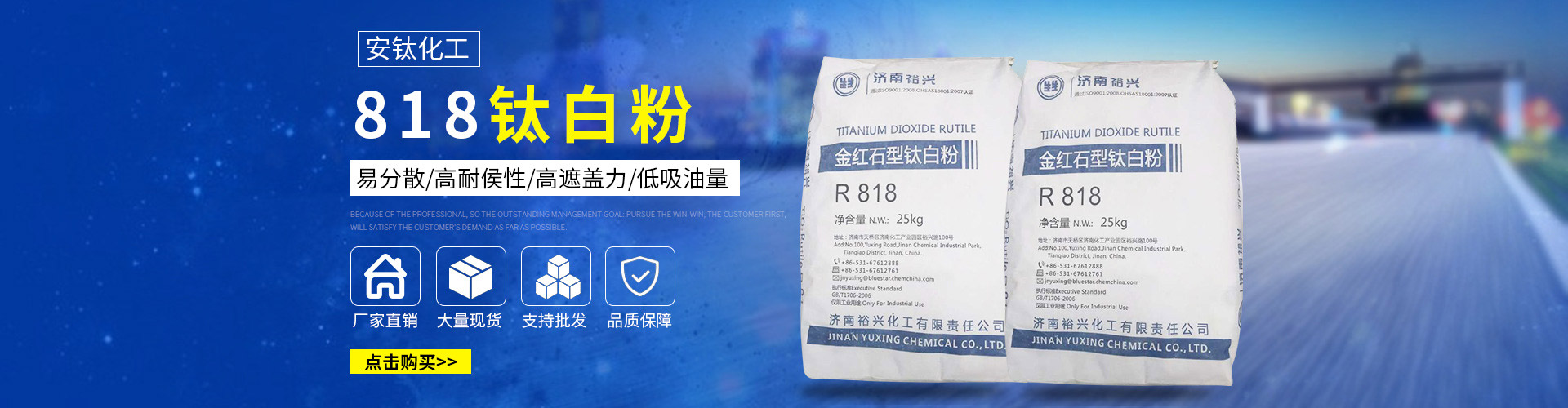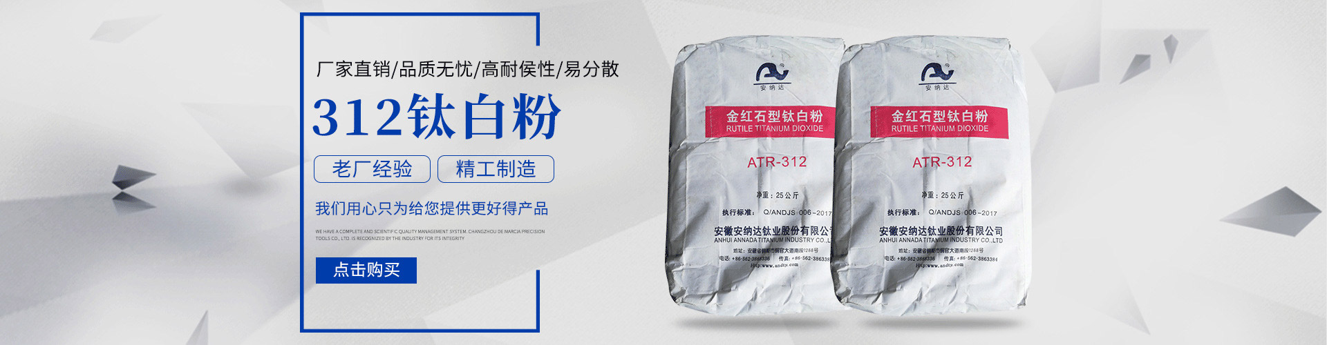 常州安鈦化工有限公司經(jīng)銷批發(fā)的鈦白粉、沉淀硫酸鋇、立德粉、滑石粉、高嶺土、炭黑、云母粉、彩色顏料、氫氧化鈣、硅微粉、氧化鐵紅、氧化鐵黑、金紅石型鈦白粉、銳鈦型鈦白粉、進(jìn)口鈦白粉暢銷消費(fèi)者市場(chǎng),在消費(fèi)者當(dāng)中享有較高的地位,公司與多家零售商和代理商建立了長(zhǎng)期穩(wěn)定的合作關(guān)系。常州安鈦化工有限公司經(jīng)銷的鈦白粉、沉淀硫酸鋇、立德粉、滑石粉、高嶺土、炭黑、云母粉、彩色顏料、氫氧化鈣、硅微粉、氧化鐵紅、氧化鐵黑、金紅石型鈦白粉、銳鈦型鈦白粉、進(jìn)口鈦白粉品種齊全、價(jià)格合理。常州安鈦化工有限公司實(shí)力雄厚,重信用、守合同、保證產(chǎn)品質(zhì)量,以多品種經(jīng)營(yíng)特色和薄利多銷的原則,贏得了廣大客戶的信任。